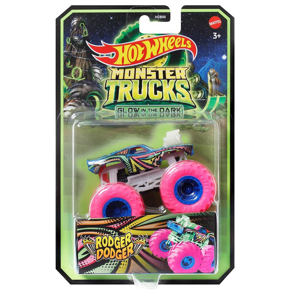 Masinuta Monster Trucks, Hot Wheels, Glow in the Dark, 1:64, Rodger Dodger, HMH31