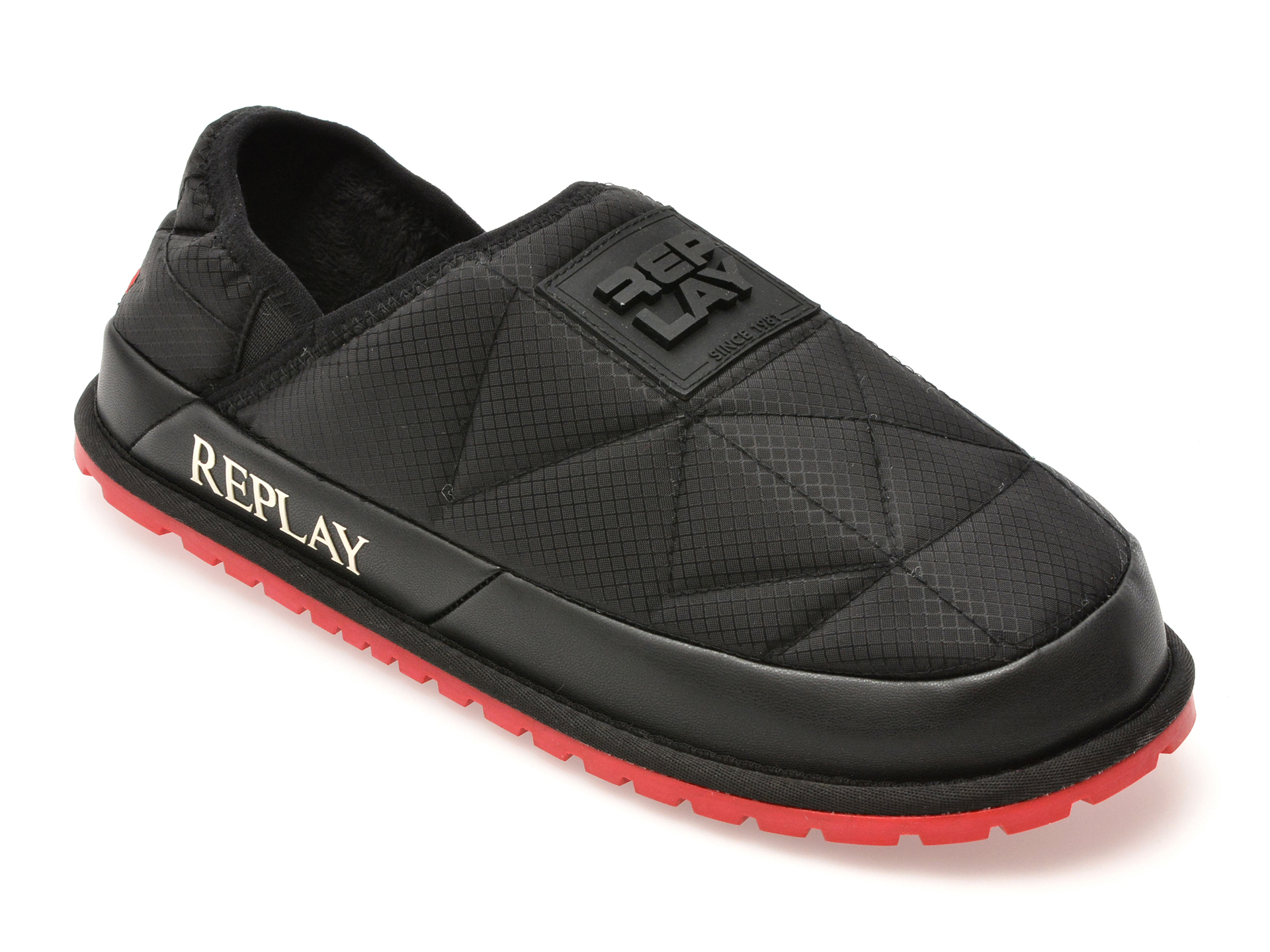 Papucii REPLAY negri, model MF3O05T, oferă un design modern și confortabil. Realizați din material textil de calitate, aceștia sunt ideali pentru utilizarea zilnică. Construcția ușoară asigură o purtare plăcută pe tot parcursul zilei.