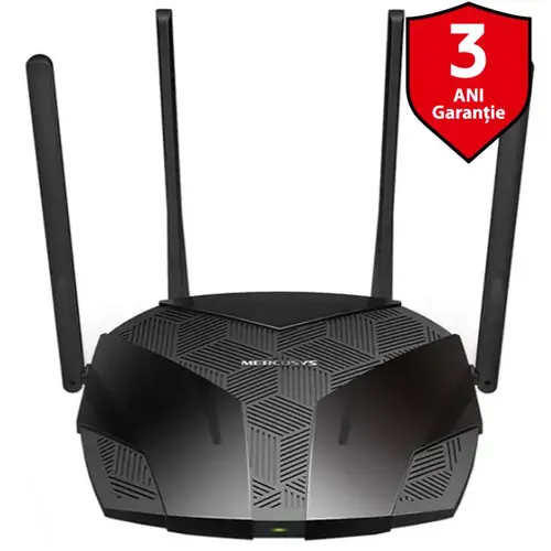Router Wireless Mercusys MR70X, Gigabit, WiFi 6, Dual Band, 1800 Mbps, 4 Antene externe (Negru)