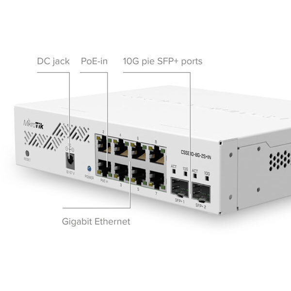 Switch-ul MikroTik CSS610-8G-2S+IN oferă performanțe excelente pentru rețelele de birou. Cu 8 porturi Gigabit, asigură transferuri rapide de date. Este ideal pentru conectarea dispozitivelor într-un mediu profesional.